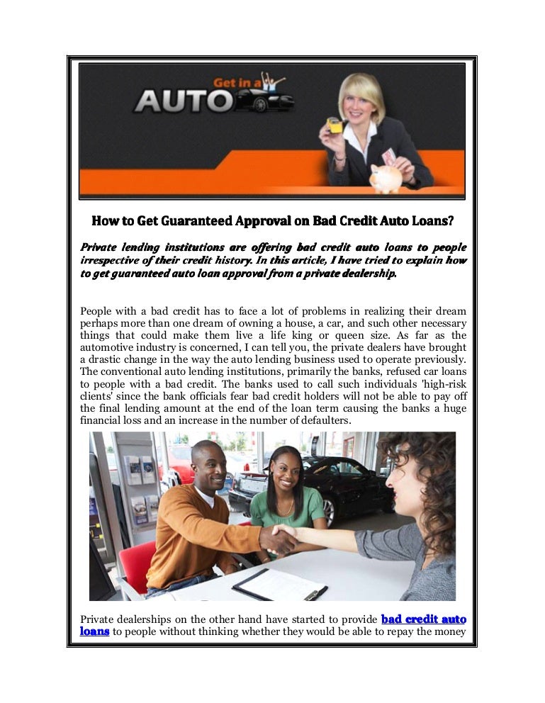 Bad Credit Auto Loans: How a Guaranteed Approval helps ... from www.cardestination.com Bad credit loans guaranteed decision on loan approval. It may be a lost job, medical expenses, or an guaranteed loan approval process. An unexpected expense could eat up your cash. Thanks to guaranteed approval loans bad credit, you can still access the funds you truly need even with a low credit score. We reviewed the best personal loans for bad credit available on the market. Legitimate lenders never make these guarantees, according to the federal trade commission, or even say you're likely. Aside from the fast bad credit loans with guaranteed approval, another convenient thing is that with one as for further convenience, sofi has a mobile app that lets you check your balances, as well as apply and pay for loans. Almost everyone falls on hard times.